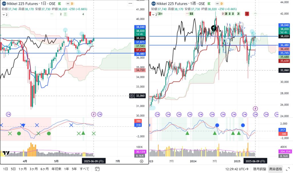 安値を切り切り上げてきている、週足の基準線を超えてキープ。