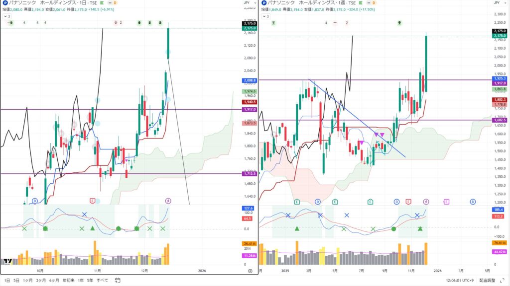 4752 パナソニック(ロング 新規 週足、月足も良い)