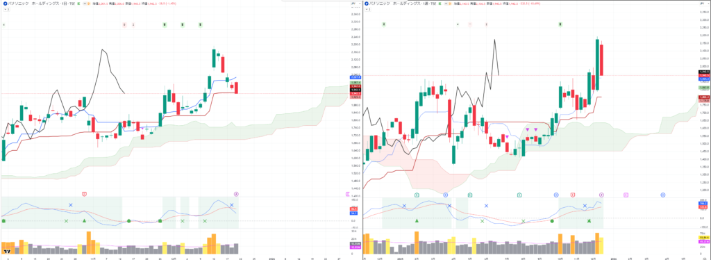 4752 パナソニック(ロング 新規 週足、月足も良い)